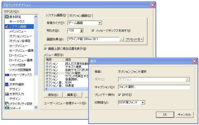 実際の台詞枠の画像選択は、オプション画面の台詞枠、画像で決定します。