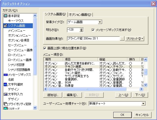ここの設定では、画像を使わないメッセージボックスの色を指定する場所でもあるのですが、ここの色設定とシナリオの背景色の設定は連携しています。